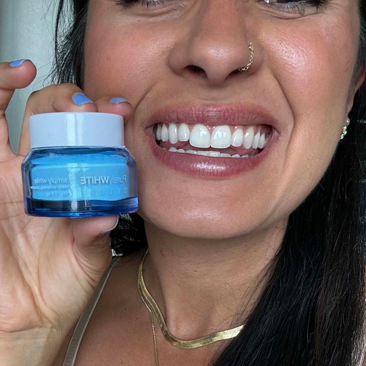 Este pó adota a abordagem oposta: sem etapas extras, sem espera, sem sujeira. Você simplesmente mergulha sua escova de dentes no pó e escova como de costume.